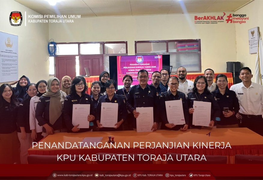 Rantepao, kab-torajautara.kpu.go.id – Komisi Pemilihan Umum (KPU) Kabupaten Toraja Utara menyelenggarakan acara penandatanganan Perjanjian Kinerja Tahun 2026 pada hari Selasa, 27 Januari 2026. Kegiatan yang bertempat di Aula Kantor KPU Kabupaten Toraja Utara ini merupakan langkah strategis dalam memperkuat akuntabilitas dan komitmen kerja seluruh jajaran penyelenggara pemilu di tingkat kabupaten. Acara ini dihadiri langsung oleh seluruh elemen penting di lingkungan KPU Kabupaten Toraja Utara, mulai dari Anggota KPU, Sekretaris KPU, hingga para Kepala Sub Bagian (Kasubag) dan staf sekretariat. Prosesi penandatanganan dilaksanakan oleh Ketua KPU Kabupaten Toraja Utara, Jan Hery Pakan, dilanjutkan Sekretaris KPU Kabupaten Toraja Utara, Isak Pareang, beserta para Kasubag. Landasan Regulasi dan Strategis Pelaksanaan penandatanganan ini bukan sekadar seremoni, melainkan amanat dari peraturan perundang-undangan yang berlaku. Dasar pelaksanaan kegiatan ini meliputi: PKPU Nomor 12 Tahun 2023 tentang Perubahan Kelima atas Peraturan KPU Nomor 8 Tahun 2019 mengenai Tata Kerja KPU hingga tingkat Kabupaten/Kota. PKPU Nomor 21 Tahun 2023 mengenai Perubahan Kedua atas Peraturan KPU Nomor 14 Tahun 2020 tentang Tugas, Fungsi, Susunan Organisasi, dan Tata Kerja Sekretariat KPU. PKPU Nomor 5 Tahun 2025 tentang Rencana Strategis (Renstra) KPU Tahun 2025-2029. Komitmen Peningkatan Kinerja Melalui perjanjian kinerja ini, setiap bagian di KPU Kabupaten Toraja Utara diharapkan memiliki target yang jelas dan terukur dalam menjalankan tugasnya sepanjang tahun 2026. Hal ini menjadi sangat krusial mengingat tahun 2026 merupakan periode penting dalam implementasi Rencana Strategis KPU yang baru saja ditetapkan pada tahun sebelumnya. Kegiatan yang dimulai sejak pukul 09.00 WITA ini juga menjadi ajang koordinasi internal untuk memastikan sinergi antara komisioner dan sekretariat berjalan dengan harmonis. Sebagai bentuk transparansi dan jenjang birokrasi. Dengan ditandatanganinya perjanjian ini, KPU Kabupaten Toraja Utara menegaskan kesiapannya untuk menjalankan tugas pelayanan publik dan penyelenggaraan demokrasi dengan integritas dan profesionalisme yang tinggi. (TIM HUMAS) ....
