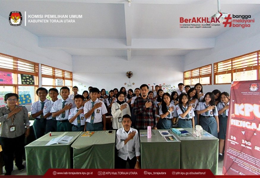 Rantepao, kab-torajautara.kpu.go.id– Komisi Pemilihan Umum (KPU) Kabupaten Toraja Utara kembali memperkuat pemahaman politik bagi pemilih pemula melalui program KPU Mengajar. Kegiatan yang berlangsung pada Kamis (15/1) ini menyasar para siswa perwakilan kelas X di SMA Negeri 2 Toraja Utara.