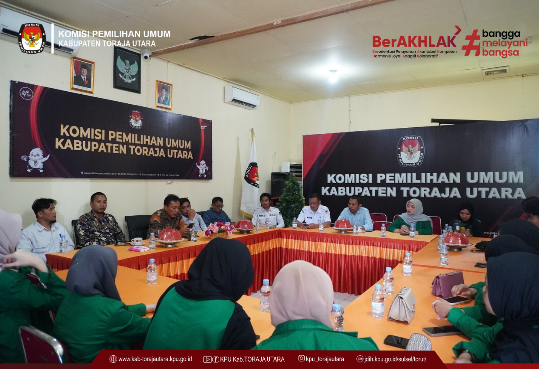Rantepao, kab-torajautara.kpu.go.id-Sebanyak 14 mahasiswa Program Studi Ilmu Politik, Fakultas Ushuluddin dan Filsafat (FUF) UIN Alauddin Makassar melakukan kunjungan praktikum dan Kuliah Kerja Lapangan (KKL) di Kantor Komisi Pemilihan Umum (KPU) Kabupaten Toraja Utara. Pertemuan ini berlangsung khidmat di Aula Kantor KPU Kabupaten Toraja Utara pada Senin, 19 Januari 2026
