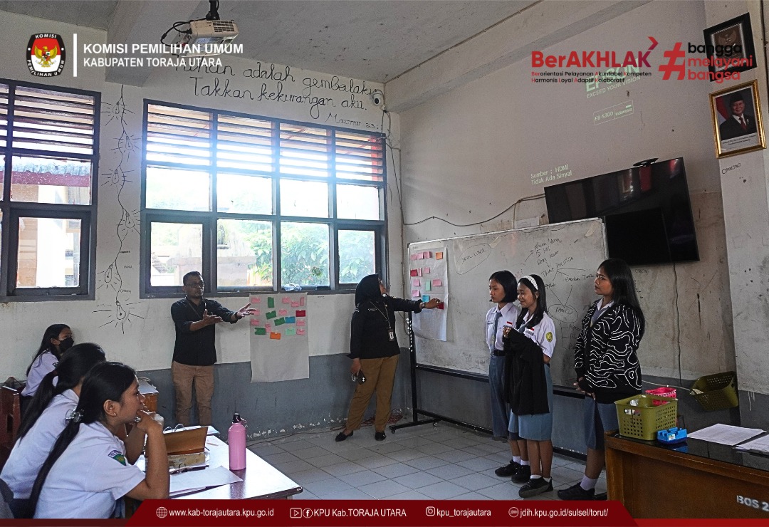 Saya, Semuel Rianto Tappi, Anggota KPU sekaligus Ketua Divisi Teknis Penyelenggaraan KPU Kabupaten Toraja Utara, bangga telah dua kali menjadi fasilitator. Pertama, Selasa 20 Januari 2026 di SMA Negeri 6 Toraja Utara, dihadiri sekitar 60 siswa dari berbagai kelas. Kedua, Rabu 21 Januari 2026 di SMA Negeri 1 Toraja Utara, khusus satu kelas dengan 25 siswa yang super antusias.