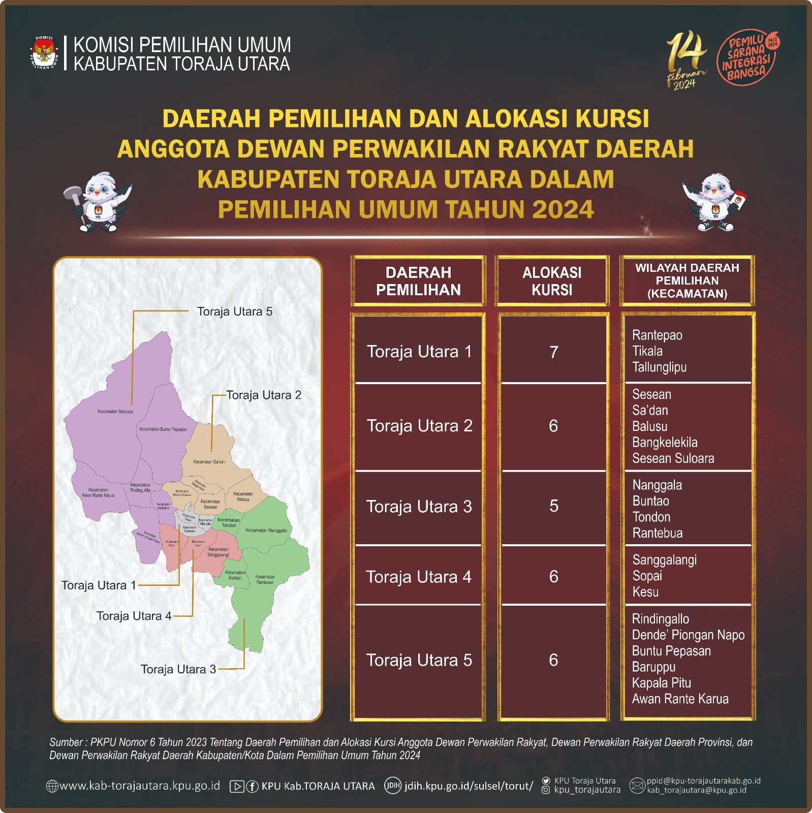 DAERAH PEMILIHAN DAN ALOKASI KURSI ANGGOTA DPRD TORAJA UTARA DALAM PEMILU TAHUN 2024