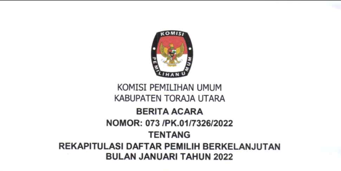 Hasil pleno menetapkan DPB Periode Februari 2022 yang dituangkan dalam Berita Acara Nomor 134/PK.01/7326/2022 sebanyak 167.832 pemilih terdiri dari 84.911 pemilih laki-laki dan 82.921 pemilih perempuan. Pada periode Februari 2022, beberapa tanggapan/masukan diterima dari Bawaslu Toraja Utara, Kepolisian Negara Republik Indonesia Daerah Sulawesi Selatan melalui KPU Provinsi Sulawesi Selatan, serta dari masyarakat. Jumlah pemilih yang dicoret karena sudah tidak memenuhi syarat sebanyak 66 pemilih, sementara jumlah pemilih baru sebanyak 84 pemilih. Selain itu, terdapat perbaikan elemen data pemilih sebanyak 5 pemilih. Dokumen Hasil Pemutakhiran Data Pemilih Berkelanjutan Periode Februari 2022 dapat diunduh DI SINI.